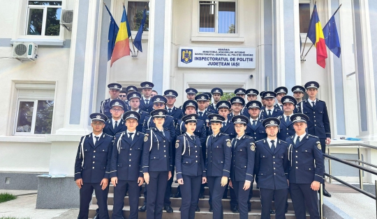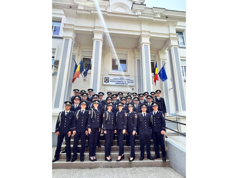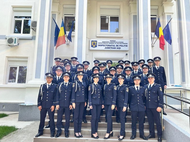 Tinerii absolvenți, pregătiți în cadrul Școlilor de Agenți de Poliție „Vasile Lascăr” Câmpina și „Septimiu Mureșan” Cluj-Napoca își încep cariera în structurile de ordine publică și rutieră din cadrul Inspectoratului de Poliție Județean Iași și Secției Regionale de Poliție Transporturi Iași.