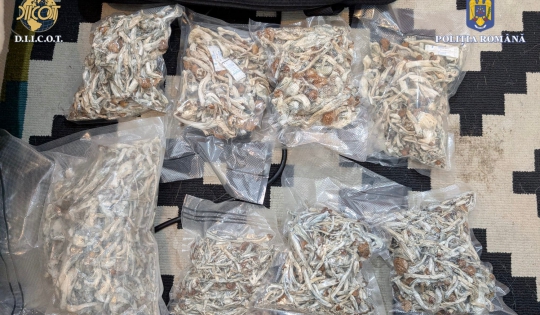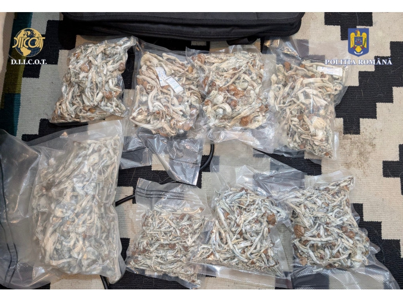De asemenea, au fost descoperite și ridicate aproximativ 920 de grame de ciuperci Psilocibine, 97 de grame de amfetamină, 100 de grame de cristal, 77 de timbre LSD, 10 grame de canabis, diverse cantități de rezină de canabis, 16 kituri de creștere ciuperci în diverse stadii de dezvoltare, mai multe recipiente conținând spori, 14 recipiente (doze) cu compartimente ascunse, un cântar electronic, o sumă de bani în lei, ustensile pentru prepararea și dozarea drogurilor, precum și alte mijloace de probă.