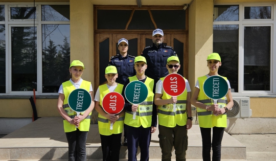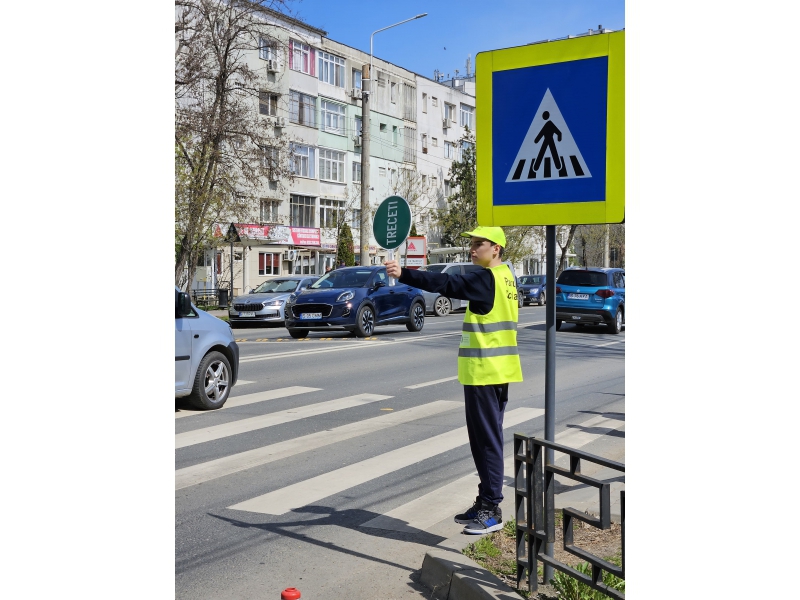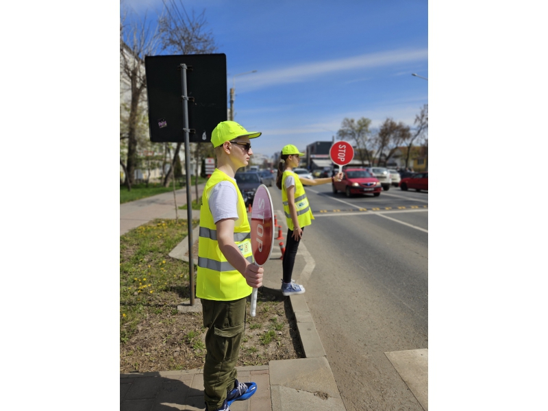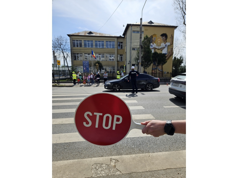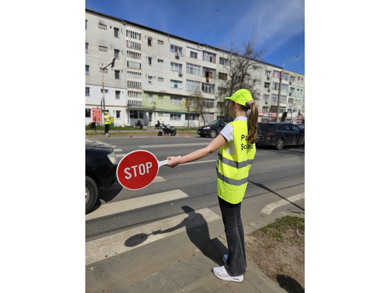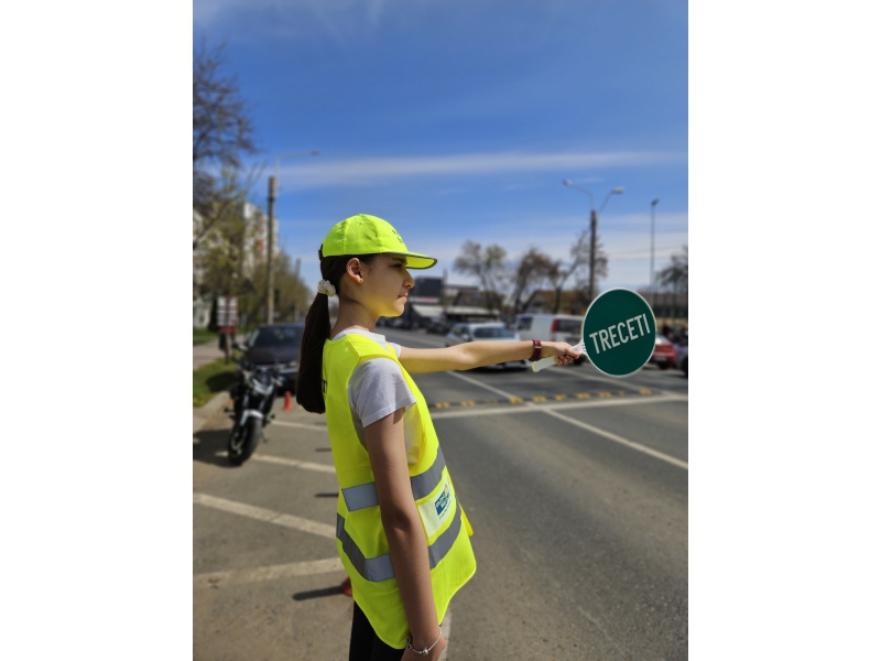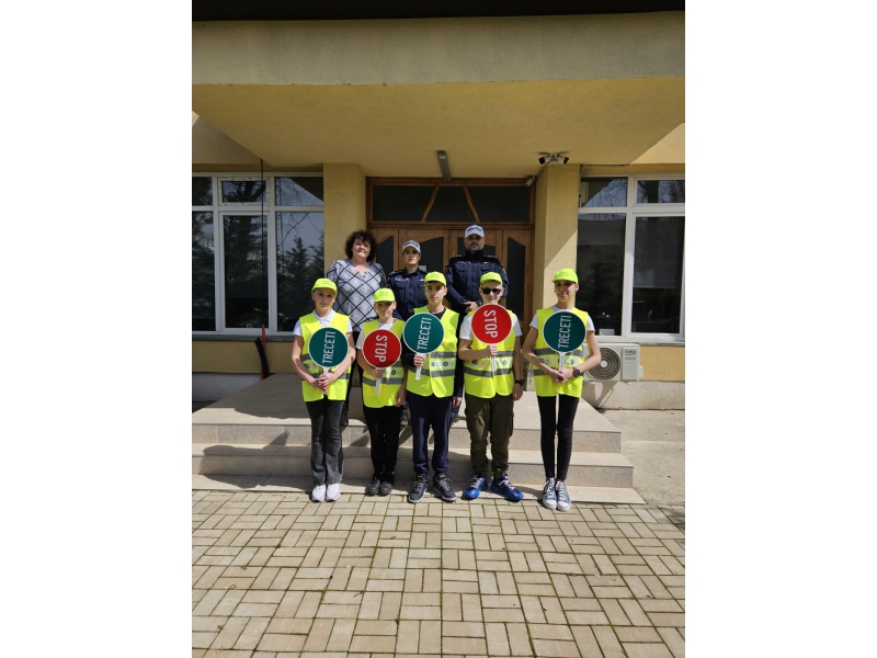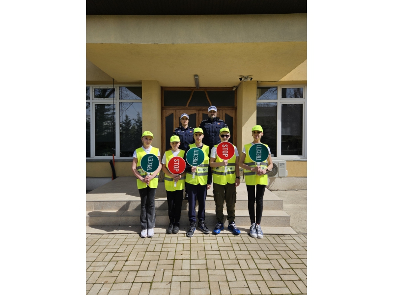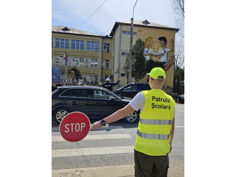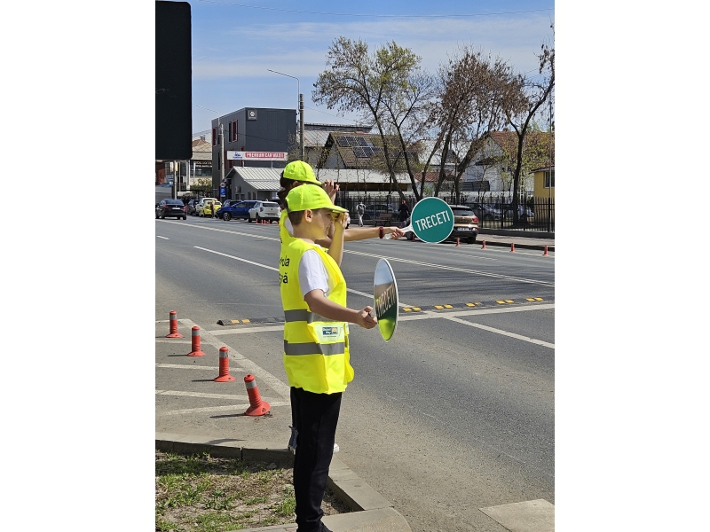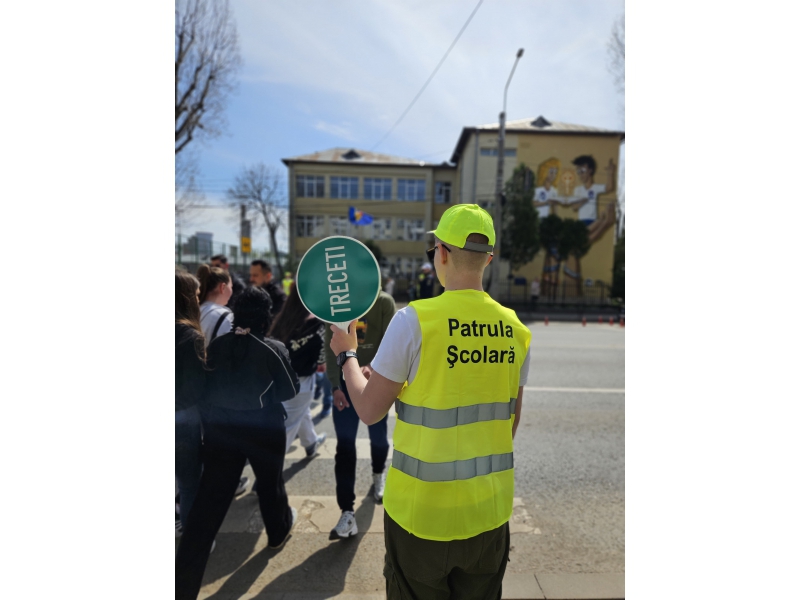 Pentru a implica direct elevii în menținerea siguranței rutiere, aceștia au fost echipați cu palete de dirijare, veste reflectorizante și șepci, inscripționate cu „PATRULA ȘCOLARĂ” și au asigurat, împreună cu polițiștii, traversarea copiilor în siguranță pe trecerea de pietoni din zona școlii.
