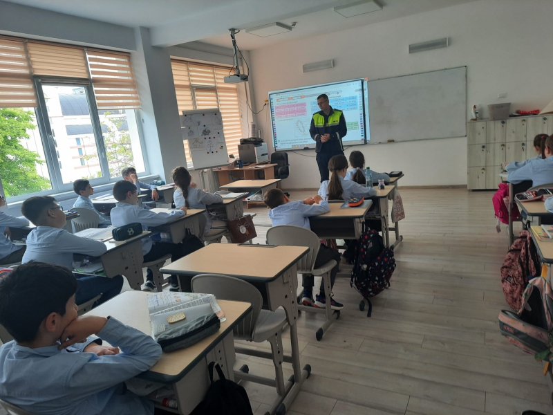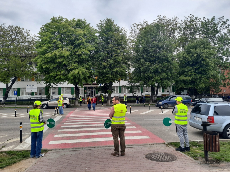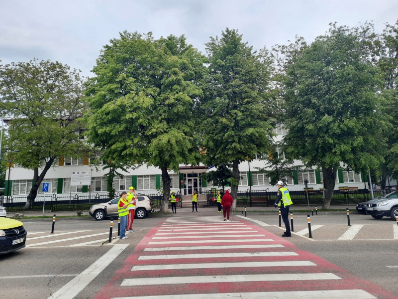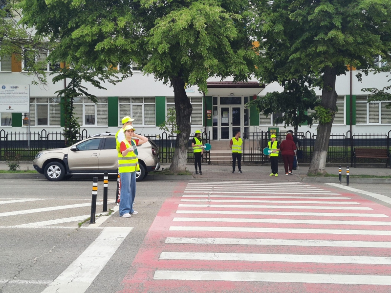Pentru a implica direct elevii în menținerea siguranței rutiere, aceștia au fost echipați cu palete de dirijare, veste reflectorizante și șepci, inscripționate cu „PATRULA ȘCOLARĂ” și au asigurat, împreună cu polițiștii, traversarea pietonilor în siguranță pe trecerea de pietoni din zona școlii.