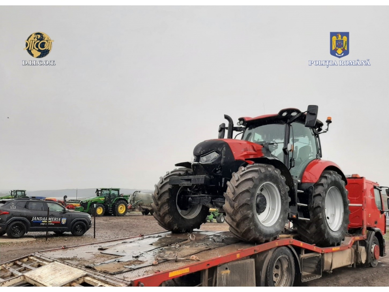 În urma perchezițiilor efectuate, au fost descoperite și ridicate, de la persoanele cercetate în cauză, 29 de utilaje dintre cele sustrase (tractoare agricole, excavatoare, încărcătoare frontale), 38.780 de euro, 65.800 de lei, 1.600 de USD, 10 arme de vânătoare, din care două deținute ilegal, iar opt păstrate fără a fi respectate prevederile legale, 337 de cartușe cu alice, 32 de cutii cu muniție, plăcuțe de înmatriculare, înscrisuri, precum și alte mijloace de probă.