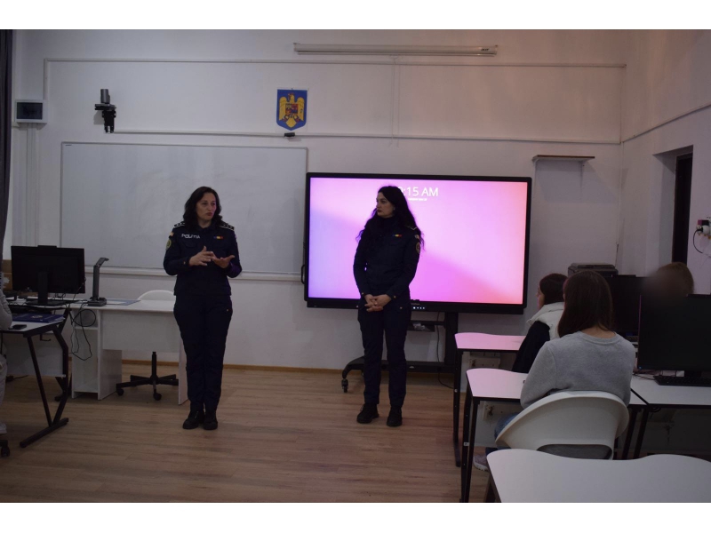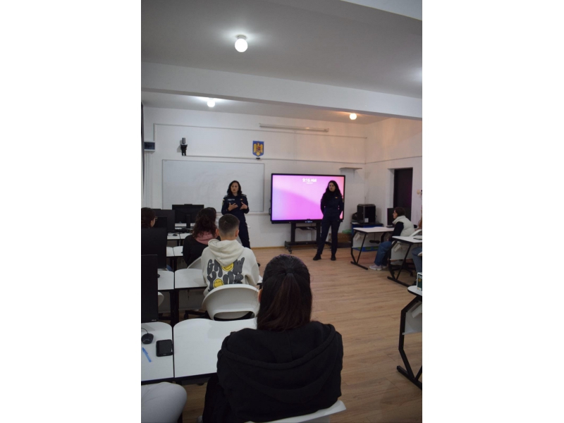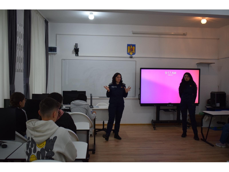În cadrul activităților derulate la Colegiul Tehnic „Haralamb Vasiliu”, polițiștii, împreună cu reprezentanți ai Fundației „World Vision” România, au transmis recomandări și aspecte elementare privind siguranţa personală și modul de evitare și gestionare a conflictelor în spațiul școlar, pe care minorii trebuie să le cunoască şi să le pună în practică, pentru a reduce riscul de victimizare.