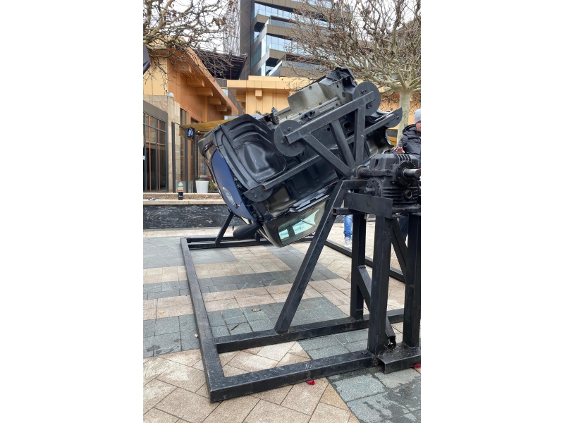 - Un stand de simulare a răsturnării unui autovehicul, care evidențiază potențarea centurii de siguranță și importanța acesteia;