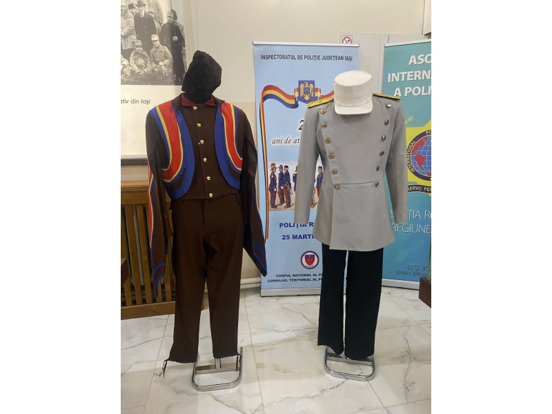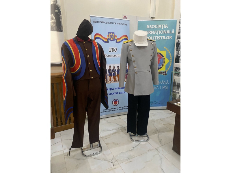 Expoziția include și uniforme de la începuturile Poliției Române din secolul XIX, respectiv uniforma de arnăut de la începutul secolului XIX și uniforma de comisar de poliție (ținută de vară) - model 1906, care au fost aduse la Iași, cu sprijinul Muzeului Național al Poliției Române, din municipiul Târgoviște.