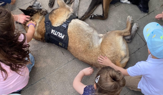 Spre încântarea celor mici, la activități au participat și câinii polițiști, iar copiii au aflat cum sunt pregătiți câinii polițiști, ce rol au în misiunile operative și cât de importantă este relația dintre aceștia și conductorii lor.